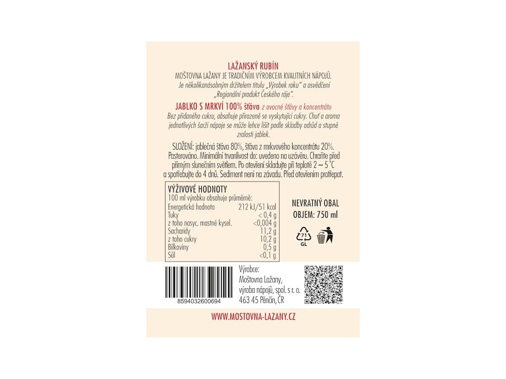 Výrobce: Moštovna Lažany, výroba nápojů, spol s.r.o.